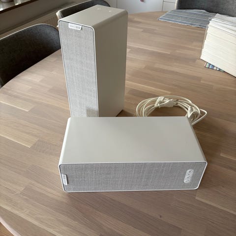 Styrs via app, röststyrning (Alexa/Google Assistant) och funkar perfekt i Sonos-system.