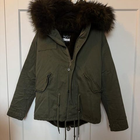 Helt nytt Stand studio jacka säljes. Jackan har mjuk fuskpäls med dold knäppning fram och sidofickor, kraglös halsringnig, rak siluett.
