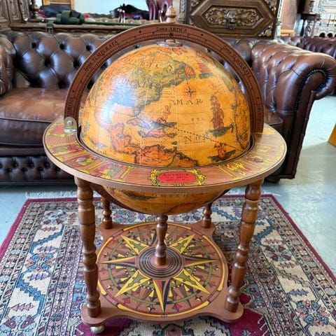Unik och antik barglob som rymmer många flaskor. Barglob är dekorerat med antik bilder. Det är inte använd mycket, så det är in jätte bra skick.