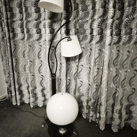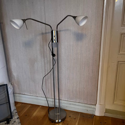 golvljusstake i krom med en distinkt U-formad design. Den har 3 ljushållare i olika höjder, vilket ger den ett kandelaberliknande utseende. Modern och stilren estetik, och liknande design beskrivs minimalistisk eller skandinavisk. Golvljusstakar som denna, särskilt de med en slimmad profil, är populära för att lysa upp hörn eller läshörnor utan att ta för mycket plats.