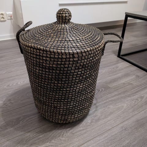 korg med lock naturvit flätad