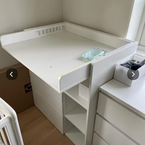 Två hyllor för ex blöjor, tvättlappar och kläder