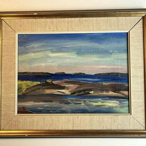 Göran Brunius. STOR oljemålning. Motiv: Stora Långholmen. Tavla