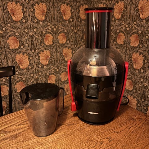 Sparsamt använd, svart med röda detaljer. Kanna 1-liter medföljer. Höjd 40 cm.