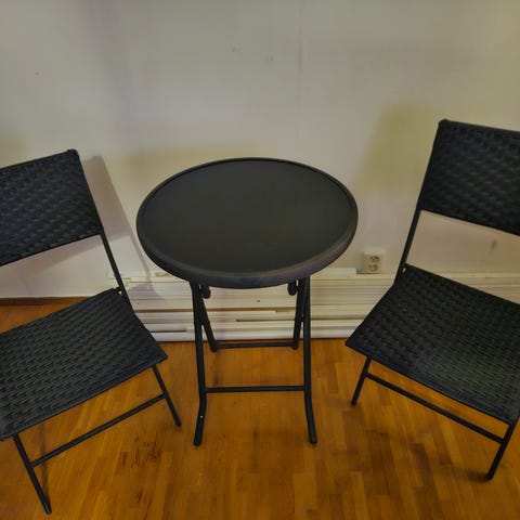 Säljer balkongmöbler från Ikea som heter Sundsö det är ett bord och tre stolar i färgen orange. Köptes juni förra året. Inga märken eller nått så dom är hela och fina precis som nya. Nypris 995 kr och då var det ett bord och två stolar jag köpte en extra stol som kostar 300 så jag betalde 1295 säljer detta för 800 kr. Finns i Västerås