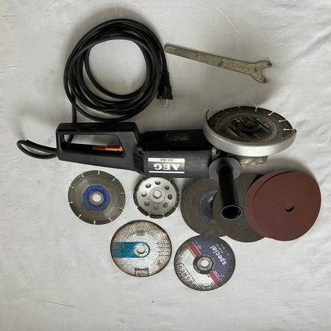 AEG / Atlas Copco HBS 65 bandslip i blå plastkonstruktion med dammpåse och nätkabel. Maskinen har anslutning för dammpåsen. Lämplig för olika typer av sliparbeten i hem och verkstad där en elektrisk bandslip behövs.