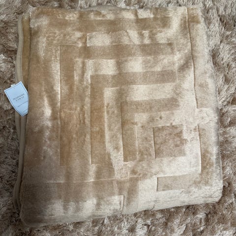 160x250 cm. Beige färg men den ena sidan ljusare. Köpt på NK men är inte använt på många år !!