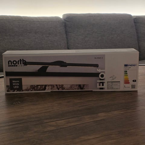 Vi råkade köpa en lampa för mycket. Monteras ovanpå bokhylla, skåp eller liknande.