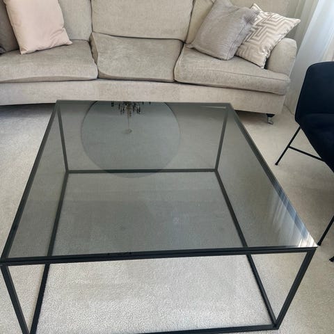 Soffbord med glasmarmorskiva. Haft mindre än ett år. Säljer pga flytta. Måtten står i beskrivning. Kostade runt 2299 ny från chilli. Den ligger ute för 1699 nu.