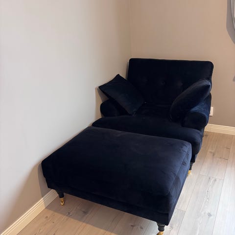 Säljer en schälslong fåtölj från IKEA, modell Vimle med smala armstöd.