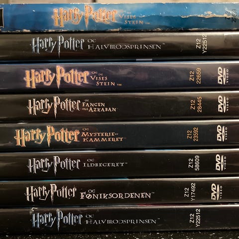 Harry Potter dvd-filmer och bok. Flera filmer ur Harry Potter-serien i dvd-format med originalfodral samt en inbunden bok.