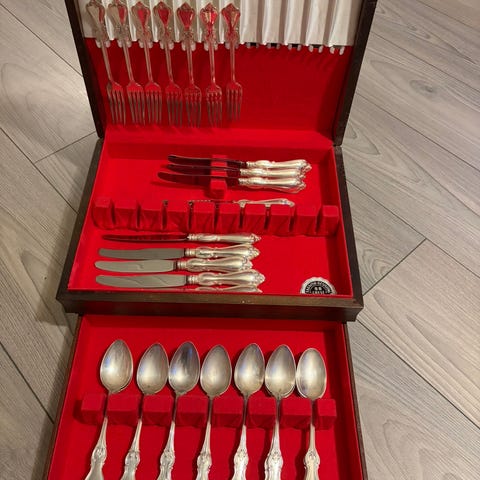 Matbestick i silver, modellen är Symfoni, som nytt