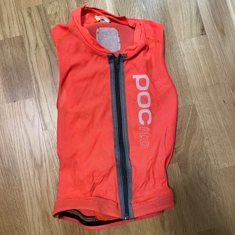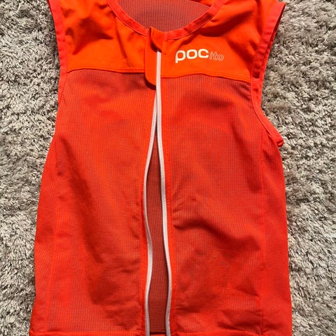 POC Pocito ryggskydd för barn i orange färg. Västen är märkt storlek S. Motsvarar barn ca 5-7 år. Se mått på bilden. Modellen har integrerat ryggskydd och är gjord i ventilerande textilmaterial.