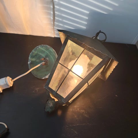 -Vikt: ca 3.50Kg.-5st.ljuspunkt E27 glödlampa-5 st glödlampor medföljer.-Vanlig stickpropp med två stickor och D form.- i fint skick lampan fungerar väl. Väl omhändertagen lampan