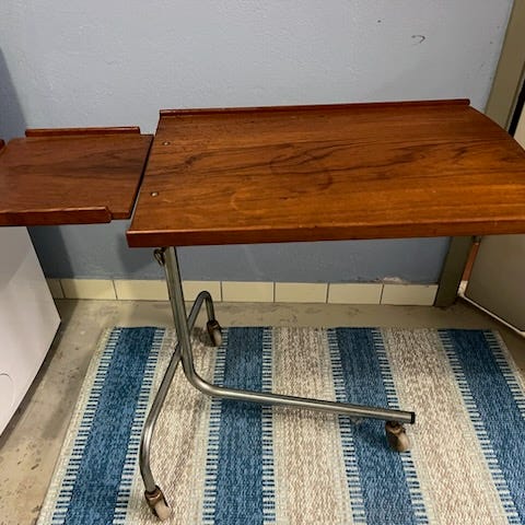 Fast arbetsbord i teak med upphängning.