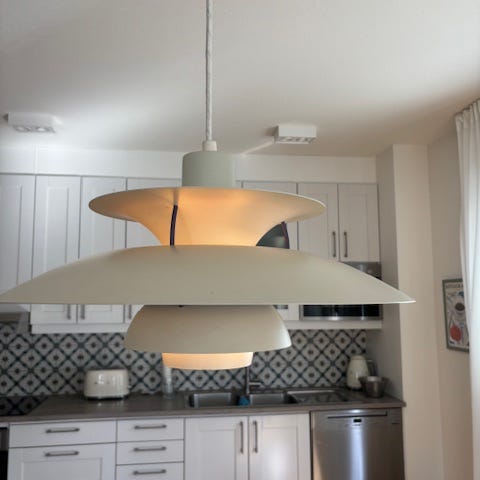 En hängande kökslampa/pendel, sannolikt från 1970–1990-tal.