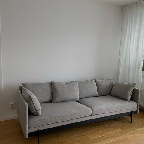 Jättefin grå soffa Anna från Sofacompany i tyget Elliot Stone. Liknar Fabio Stone (se bild från hemsida).