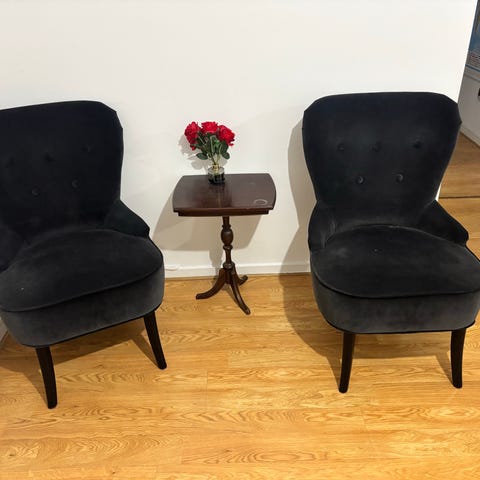 IKEA fåtölj med fotpall rosa sammet