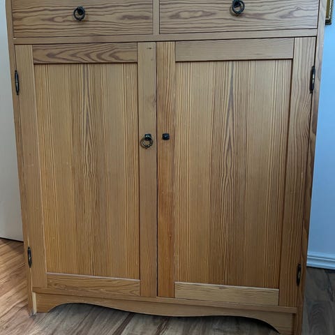 Saknas två lister som ska sitta vid sidorna av övre lådan. Två nycklar följer med.