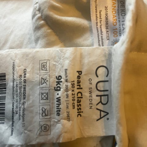 Fyllning 100% Polyester, överdrag 100% bomullscambric, 1250 g