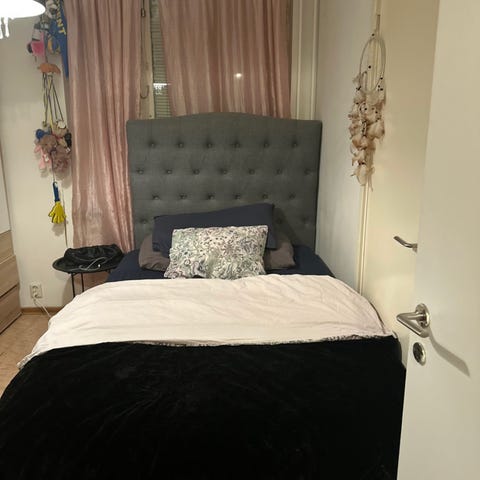 Katt finns i hemmet men rengjord så noga det går innan den säljs. I gott skick och passar en 120 säng.
