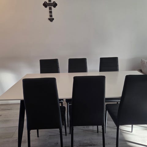 Matbord med 6 stolar säljes pga flytt inköpta på SE möbler i Helsingborg nypris cirka 25.000kr bord samt stolar är i fint skick