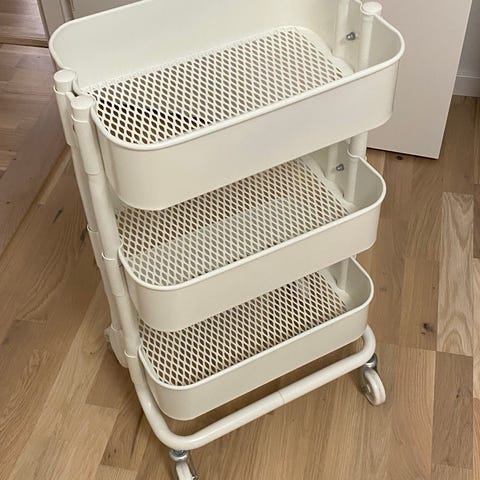 Yteffektiv rullvagn som får plats i de minsta utrymmena och kan flyttas dit du behöver extra förvaring för köksredskap, skrivbordstillbehör, nycklar och laddare.