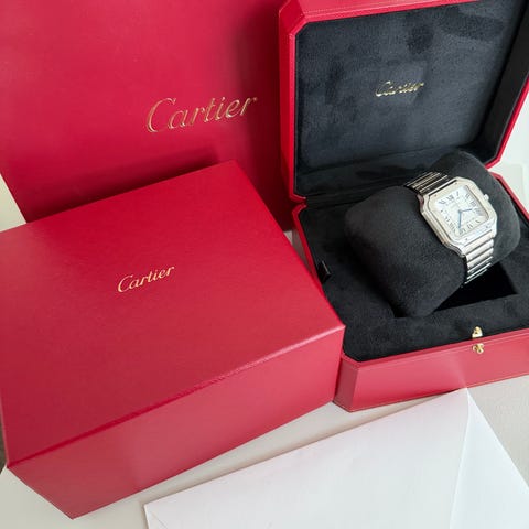 Säljer nu 1st Original Cartier Santos XL i guld och stål med vit urtavla.