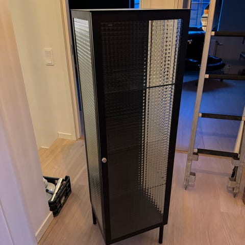 Svarta skåp i plåt med låsbara luckor. 250 kronor styck
