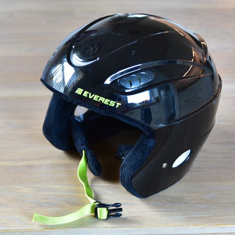 Skidhjälm med integrerat visir i svart färg. Hjälmen har hårt ytterskal och inbyggt visir med spegelglas som täcker ögonen. Justerbart hakband och öronpartier för bättre passform och komfort. Passar för skidåkning och snowboardåkning.