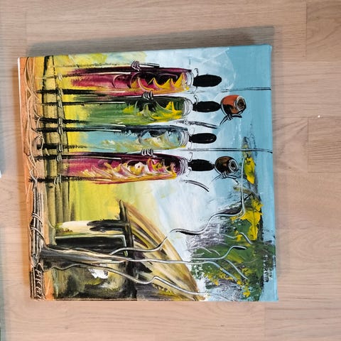 Canvastavla målad med akryl, detta är enda exemplaret. Tecken är det japanska uttrycket IKIGAI (生き甲斐) som är en japansk term som kan beskrivas som en motiverande kraft som ger en människas liv mening. Storlek 50X70, ram tillkommer för 200:- extra.