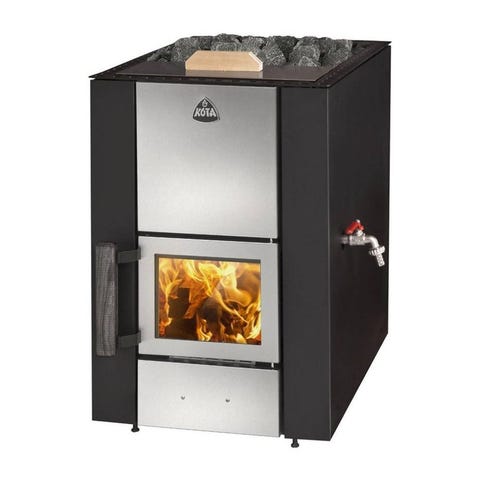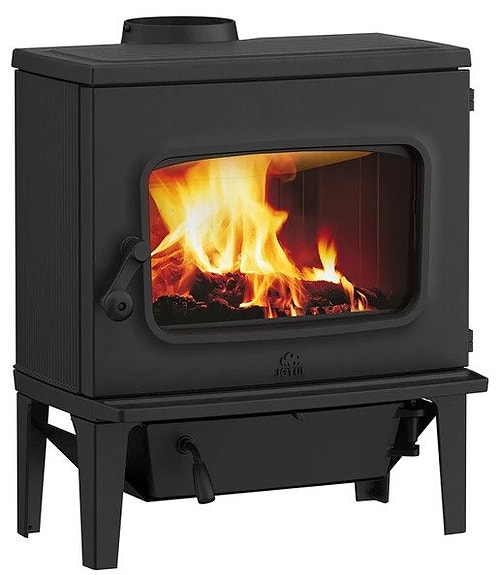 Den moderna eldstaden, där veden förbränns genom tillförsel av sekundärluft via hål i vermeculiten, ger högsta möjliga verkningsgrad. Endast 5 cm lättbetong krävs som brandvägg på var sida om spisen.