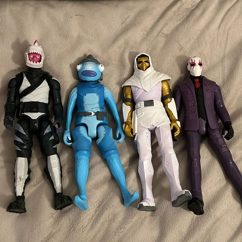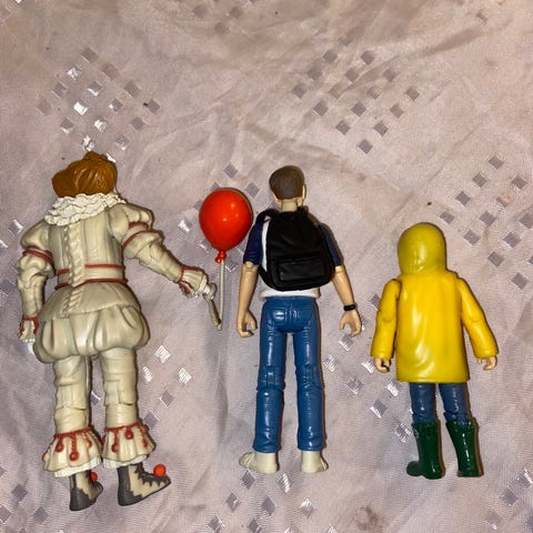 Blandade skräckfigurer samlarfigurer med tillbehör. Flera olika figurer i plast med utbytbara huvuden och lösa delar, inspirerade av klassiska skräckkaraktärer. Figurerna är målade i flera färger och har detaljerade kläder och ansikten. Passar som samlarobjekt eller prydnad för den som gillar skräcktema och filmrelaterade figurer.