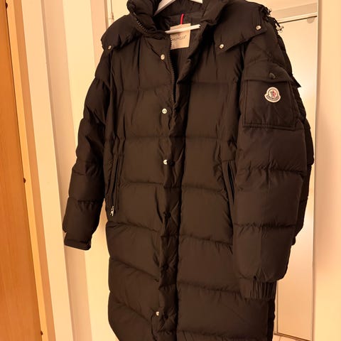 Moncler Maya vinterjacka för herr i storlek S. Jackan är svart och fylld med dun. Modellen har quiltad konstruktion med horisontella kanaler, huva och hög krage. Stängning med dragkedja framtill samt två framfickor med dragkedja. Jackan är tillverkad för kallare väderförhållanden och passar som varm ytterjacka under vintersäsongen.