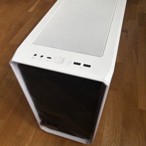 Fractal Design datorchassi i vit färg med svart front- och toppgaller. Chassit har frontpanel med USB-portar, ljudanslutningar samt strömknapp placerade upptill på framsidan. Invändigt finns plats för flera lagringsenheter och expansionskort, samt monteringsmöjligheter för fläktar och eventuell vattenkylning. Passar som grund för stationär datorbyggnation där användaren själv väljer övriga komponenter som moderkort, nätaggregat, grafikkort och lagring.