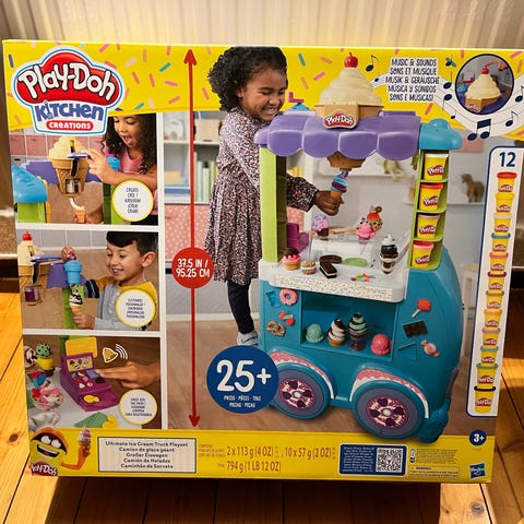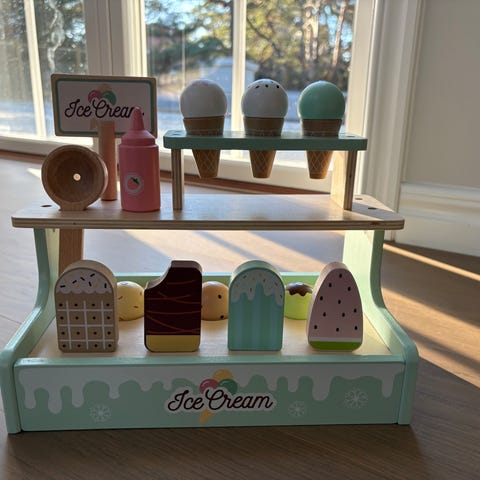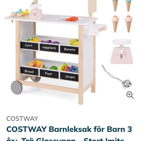 Glass och korvvagn från Melissa & Doug i bra skick. Några små ställen där färgen lossnat. De tillbehören som finns på bilden skickas med.