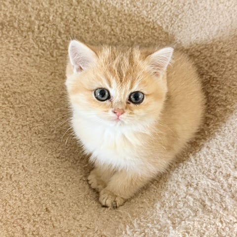 Brittisk kattunge, föddes 16 januari och är leveransklar 16 april. Pappan är brittisk korthårig och mamman är brittisk långhårig. Det är en hona.