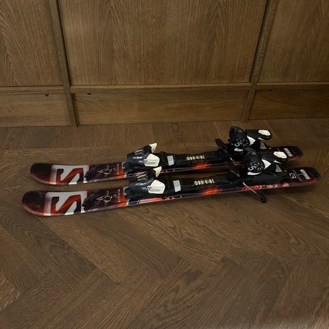 Tecnopro XT Team 120 alpinskidor med bindningar. Skidorna har en längd på 120 cm och är märkta med måtten 97-66-88 samt svängradie 9,9 m. Färgkombination i rött, vitt och svart. Undersidor och kanter visas på bilderna. Passar för utförsåkning i pist. Bindningarna är monterade på skidorna, exakt inställning och skostorlek behöver justeras efter åkare av fackman.