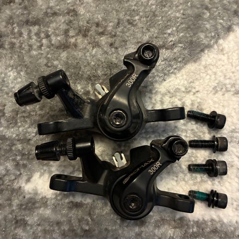 inga bromsbelägg med i bromsarna och styren är båda 31,8 och ca 760mm breda