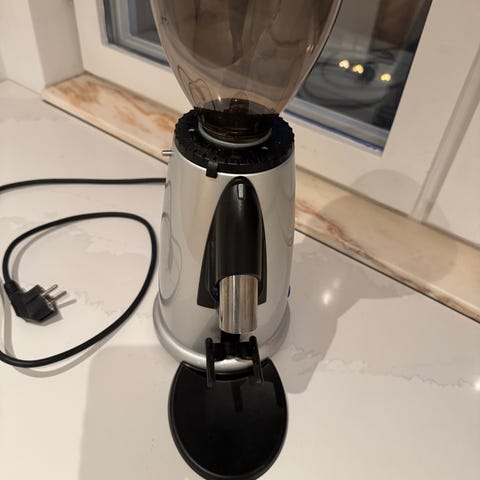 Rejäl (15 kg!) kaffekvarn/espressokvarn med 75 mm malskivor. Hoppern är kapad och saknar lock. Skickas ej. Lite yttre skavanker men tuffar på bra. Säljer pg av snedgradering.