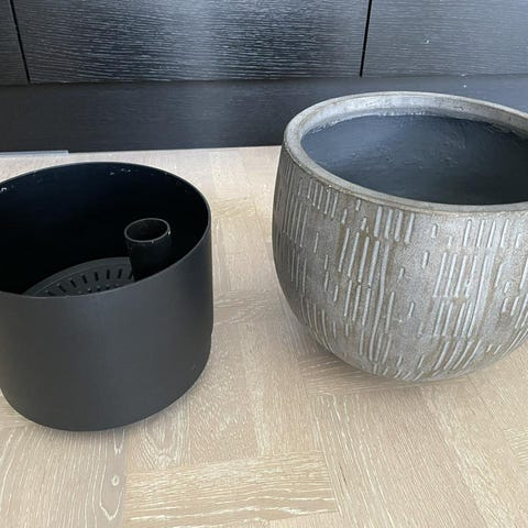 Vajande palmer och solen i zenit! Vem drömmer inte om det just nu. Jag har en palm som behöver lite extra stöd (behöver planteras om i större kruka). Men du får krukan och palmen till lågt pris. Höjden från golvet till palmens topp är 150 cm. Keramikkrukan är 57 cm hög och 38 cm i diameter.