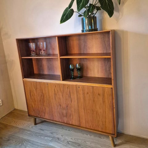 Sideboard. Tvbänk. Vitrinskåp. Facett. Bodafors. 50-tal. 60-tal. Retro. Vintage. Teak. Valnöt