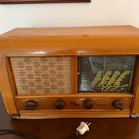Philips radio plus andra märken i klassisk utförande. Består av flera äldre modeller med olika front- och baksidesutföranden, bland annat bordradio i träkabinett och portabel radio med teleskopantenn. Utrustade med analoga rattar och skala för inställning av radiokanaler. Passar som radioapparater eller som inrednings- och samlarobjekt. Exakta modellbeteckningar och tekniska specifikationer framgår inte av bilderna.
