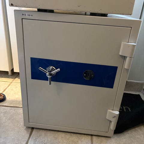 Rosengrens värdeskåp i vitt metallutförande. Skåpet har frontpanel med grå och röd detalj samt cylinderlås på dörren. Gångjärn sitter på höger sida. Lämpligt för förvaring av värdesaker, dokument och annan egendom i hem eller kontor. Placeras fristående eller på stabilt underlag, exempelvis hylla eller bänk.