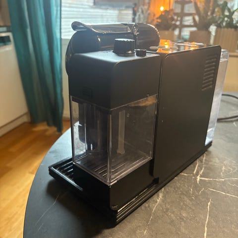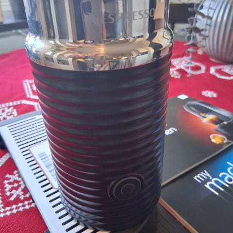 Nespresso mjölkskummare i svart färg säljes då jag köpt kaffemaskin. Passar för att skumma och värma mjölk till kaffe- och espressodrycker i hemmet eller på kontoret. Cylindrisk behållare med slät insida för enkel rengöring och yttre räfflad design för bättre grepp.