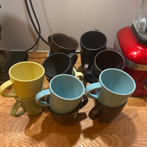 Klassiska Höganäsmuggar i keramik. Passar för te. Fyra stycken i mycket fint skick.