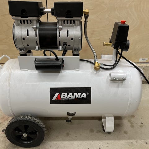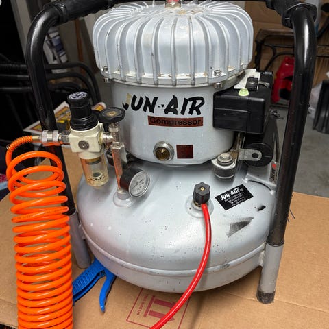 Extremt tyst Jun-Air kompressor med tankvolym 24,5 liter och maxtryck 8 bar.