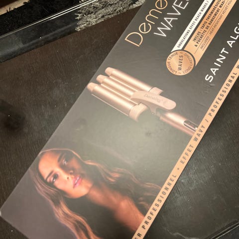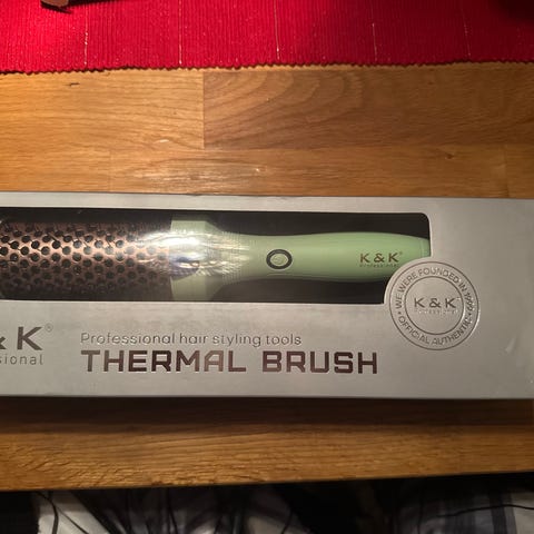 locktång i beige färg med klämma och sladd för eluttag. Passar för styling av hår med värme. Handtag i mörk plast och rund värmecylinder i metall. Avsedd för användning inom personlig hårvård i hemmet eller på salong.