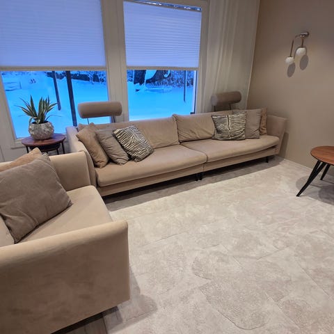 Rosa soffa köpt från Soffadirekt i slutet av 2019. Se sista bild för mått.