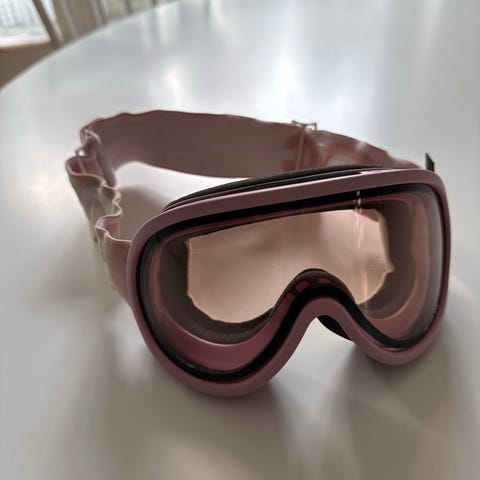 POC skid- och snowboardhjälm med skidglasögon rosa